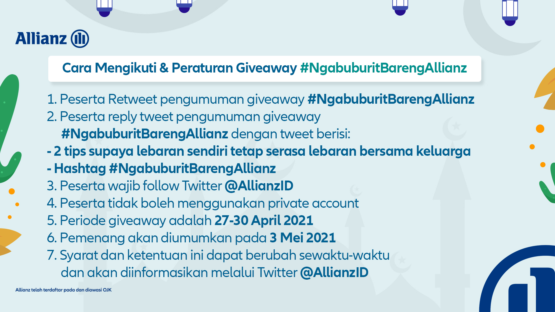 Allianz Indonesia On Twitter Sebelum Ikut Giveaway Ngabuburitbarengallianz Baca Dulu Cara Ikutan Amp Peraturan Yg Berlaku Mimin Tungguin Nih 2 Tips Dari Temanallianz Supaya Lebaran Mimin Yang Sendirian Nanti Bisa Tetap Berasa