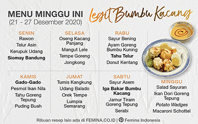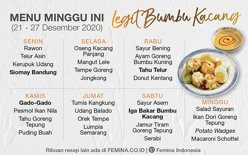 Daftar Menu Mingguan 21 27 Desember 2020 Legit Bumbu Kacang